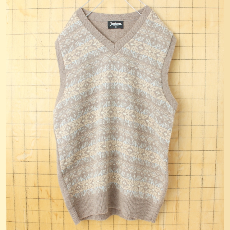 80s 90s USA製 Jantzen 総柄ウールニットベ…