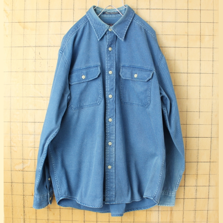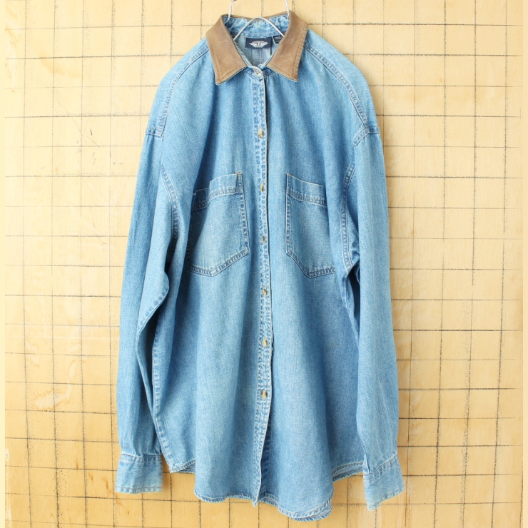 90s USA DOCKERS ドッカーズ 襟レザー 長袖デ…