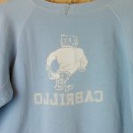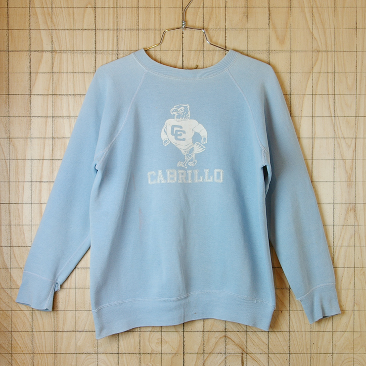 【ビンテージ】古着CABRILLO(カブリロ)ライトブルー(水色)両面プリントカレッジスウェット・トレーナーです。