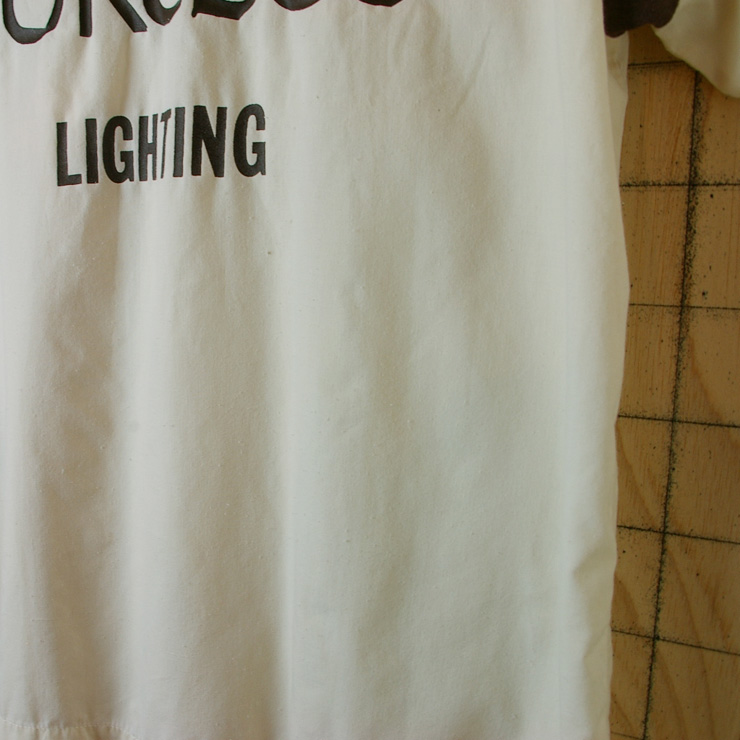 【ビンテージ】古着USA(アメリカ)製半袖オフホワイト×ブラウン(白×茶)FORESCO-LIGHTINGボーリングシャツ【Hilton(ヒルトン)】です。