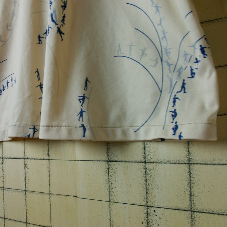 シャツがアイススケートのリンクになって、その上を優雅にスケートしているプリントのレトロシャツです。