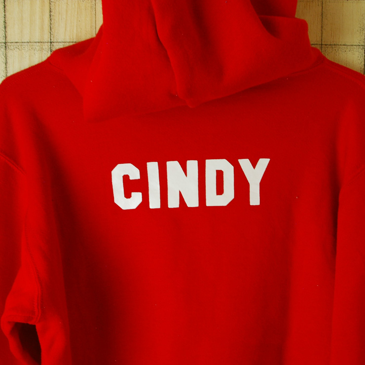 CINDYとバックプリントされた70年代のスウェットパーカー。