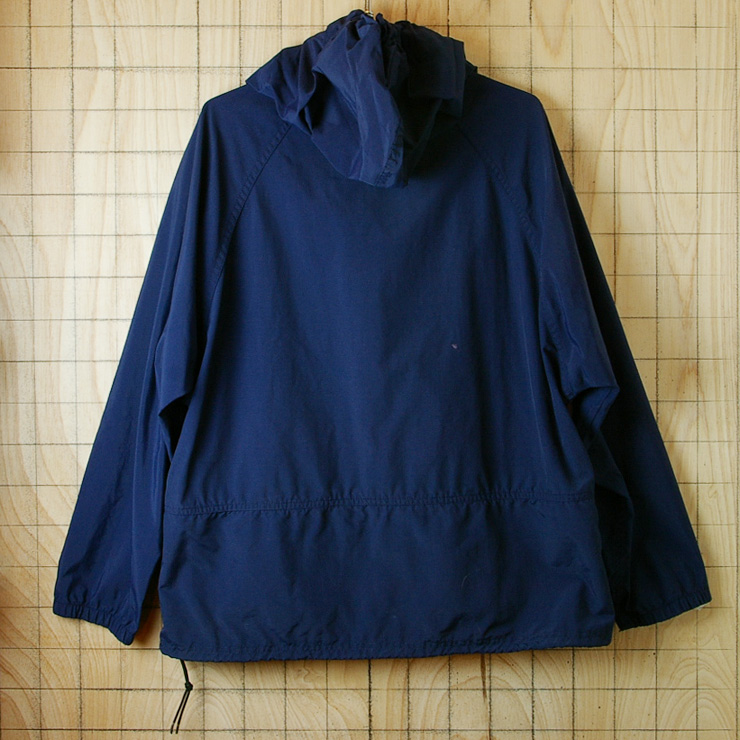 古着LLBean(LLビーン)ネイビー(紺)アウトドアイラスト(ビーンブーツ)チロリアンテープ-フード付きナイロンジャケット・ウインドブレーカー【LLBean】です。