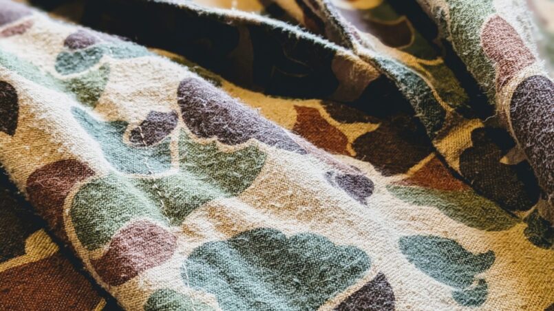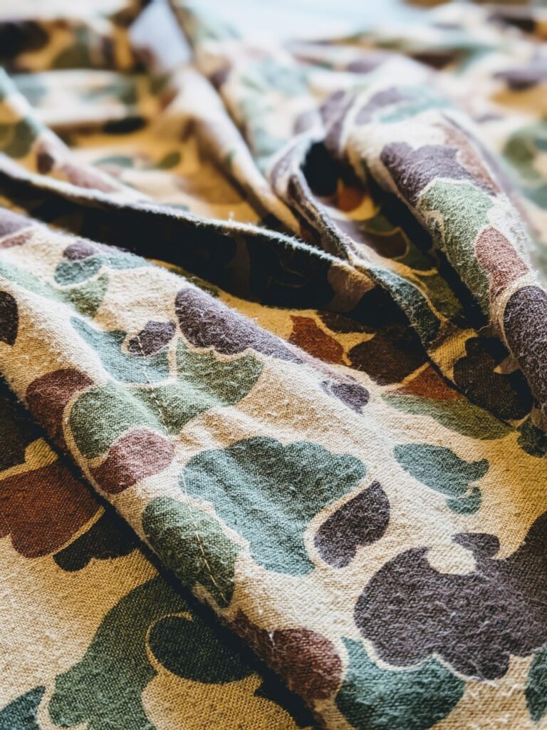 カラーは人気のダックハンターカモ、ふんわりと柔らかい肌触り、少し起毛したフランネル生地です。