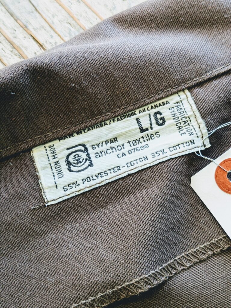 70s 80s Anchor Textiles CANADA製 ワークジャケット メンズL ブラウン オープンカラー アメリカ古着
