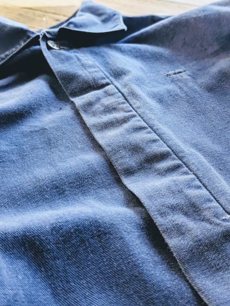 カラーは風合い良く色落ちしたネイビーブルー。