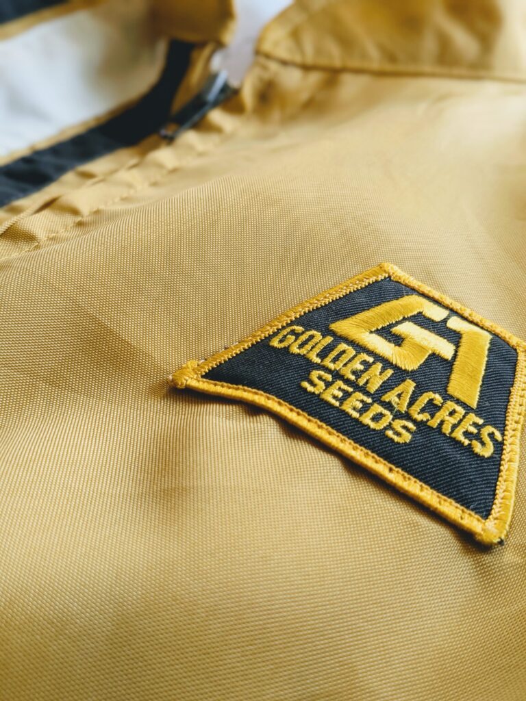 胸元にはGOLDEN ACRES SEEDSのワッペン。