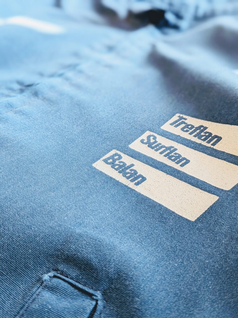 カラーはブルー、サラサラとしたポリコットン生地です。