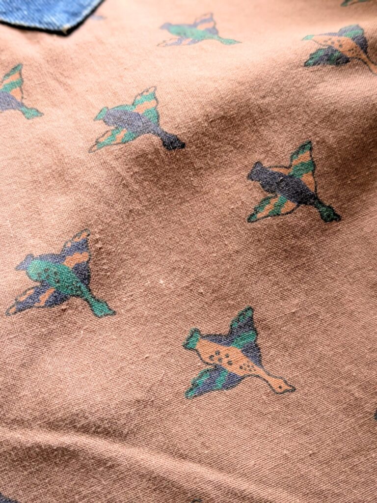 程よい厚みのあるしっかりとした生地感、カモ柄のライナー付きです。