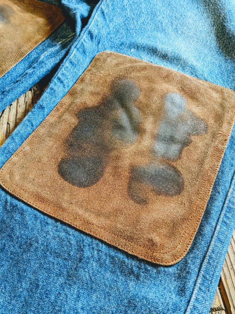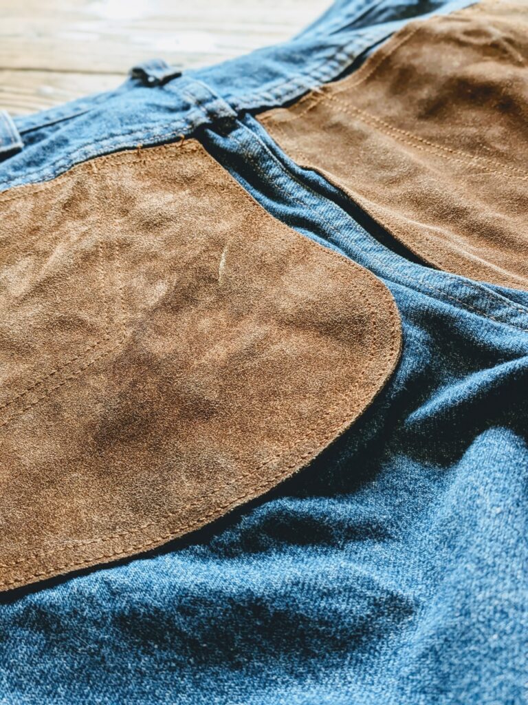 ニーパッド、ヒップポケット、サイドポケットがスエードレザーです。