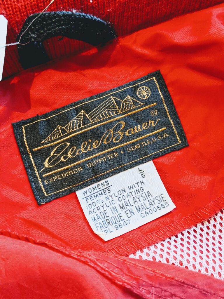 80s USA Eddie Bauer エディーバウアー ナイロンジャケット レディースL メンズM相当 レッド アウトドア アメリカ古着