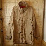 襟にワッペンの付いたコートはおそらくミリタリー。もしかするとポストマン。