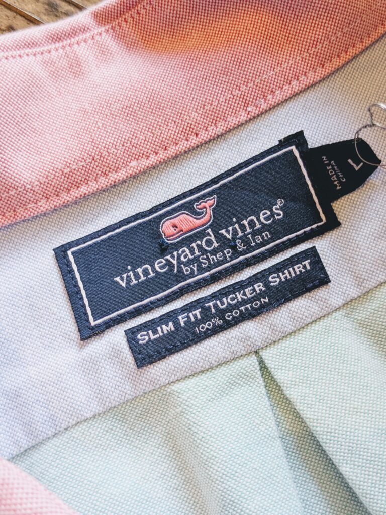 USA vineyard vines ボタンダウンシャツ グリーン レッド ブルー メンズL 長袖 アメリカ古着