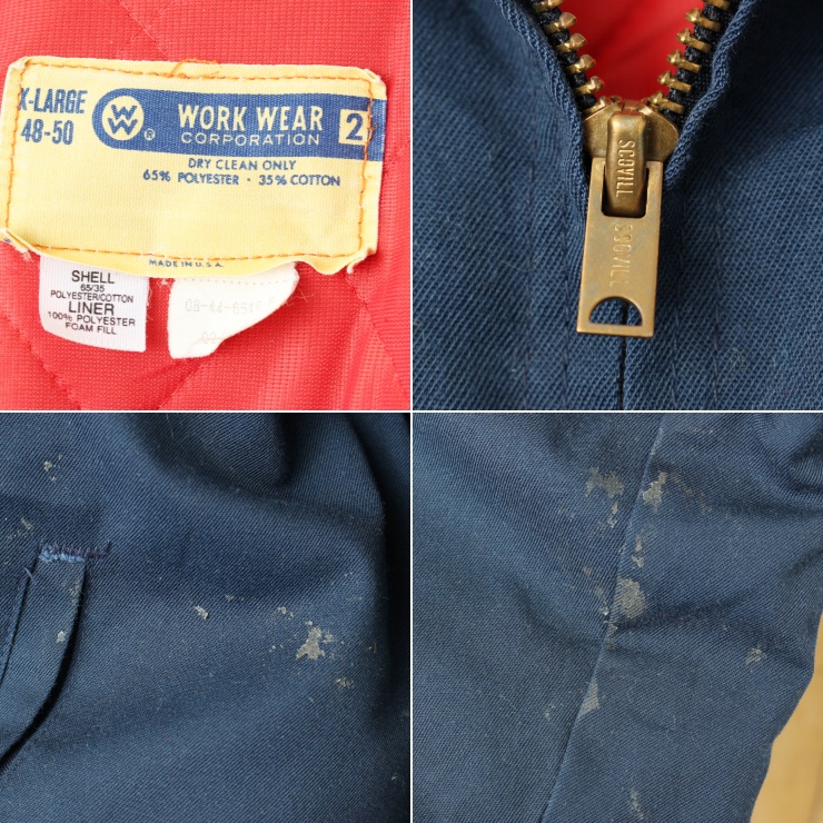 70s 80s USA製 WORK WEAR CORPORATION キルティングライナー ワークジャケット メンズXL ネイビー ブルー 中綿 アメリカ古着