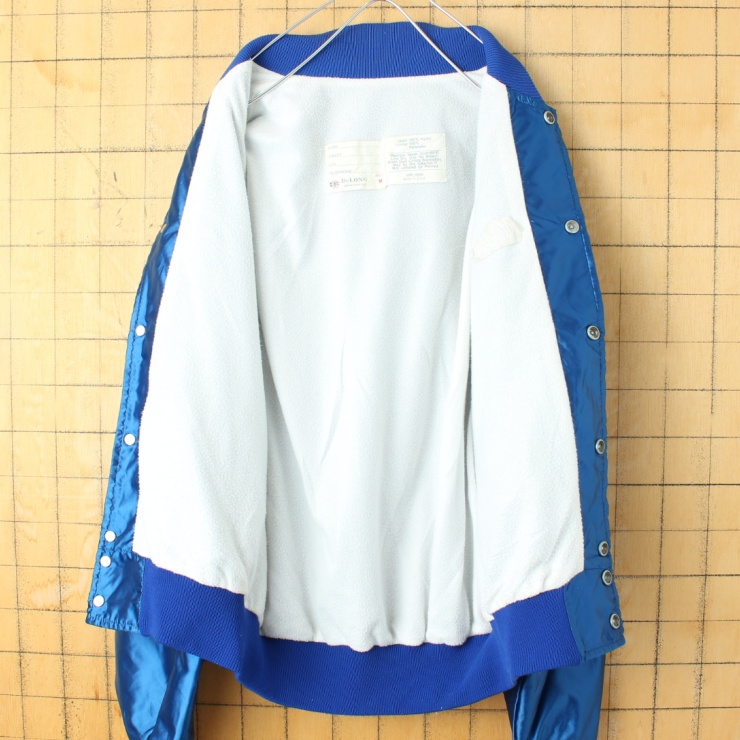 70s 80s USA製 DeLONG ナイロン スタジャン ブルー メンズM スタジアムジャケット アメリカ古着です。