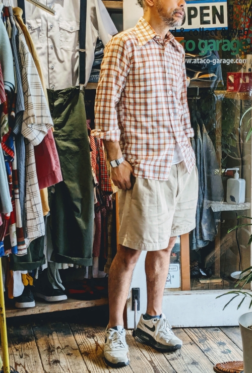 70s 80s EURO PINTO チェックシャツ オレンジ メンズM相当 長袖 ヨーロッパ古着です。