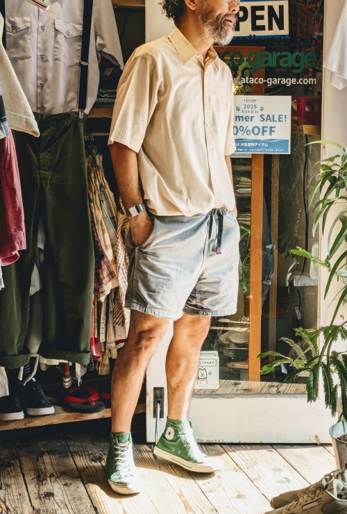 70s 80s USA McGREGOR Bagpiper 半袖 チェックシャツ ベージュ イエロー メンズL アメリカ古着です。