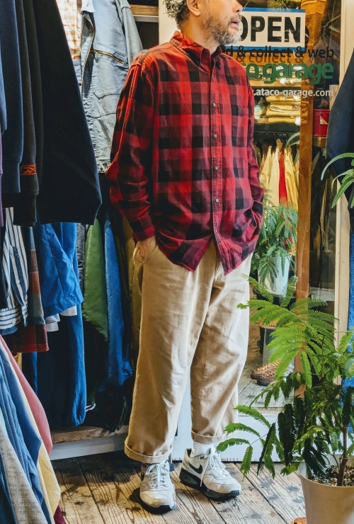 90s 00s USA ST JOHN'S BAY チェックボタンダウンシャツ レッド メンズL 長袖 アメリカ古着です。