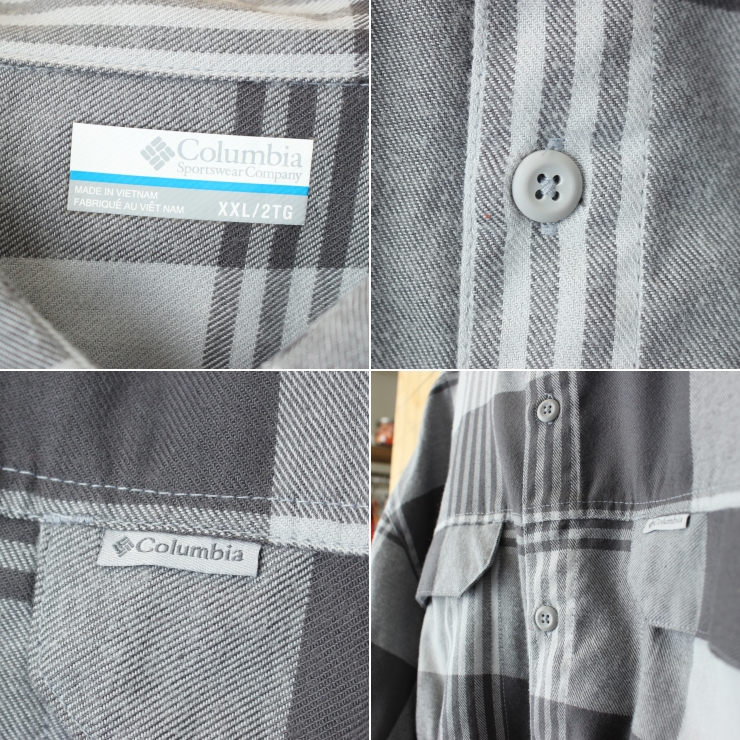 ビッグサイズ USA Columbia コロンビア フランネルチェックシャツ グレー メンズXXL 長袖 アウトドア アメリカ古着です。