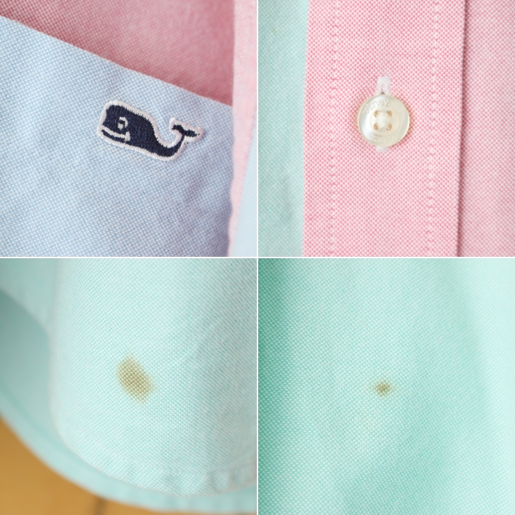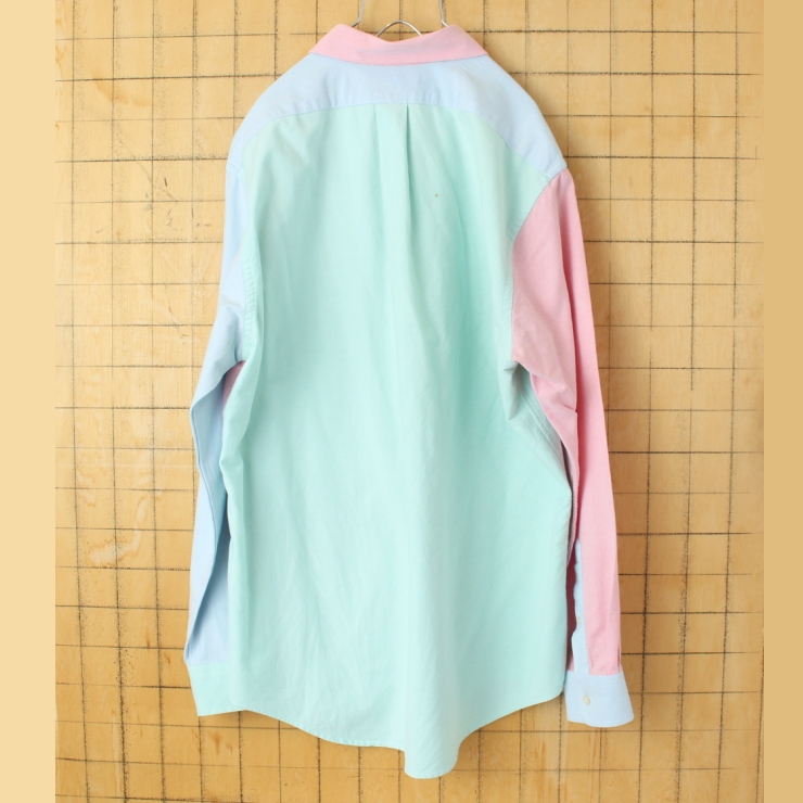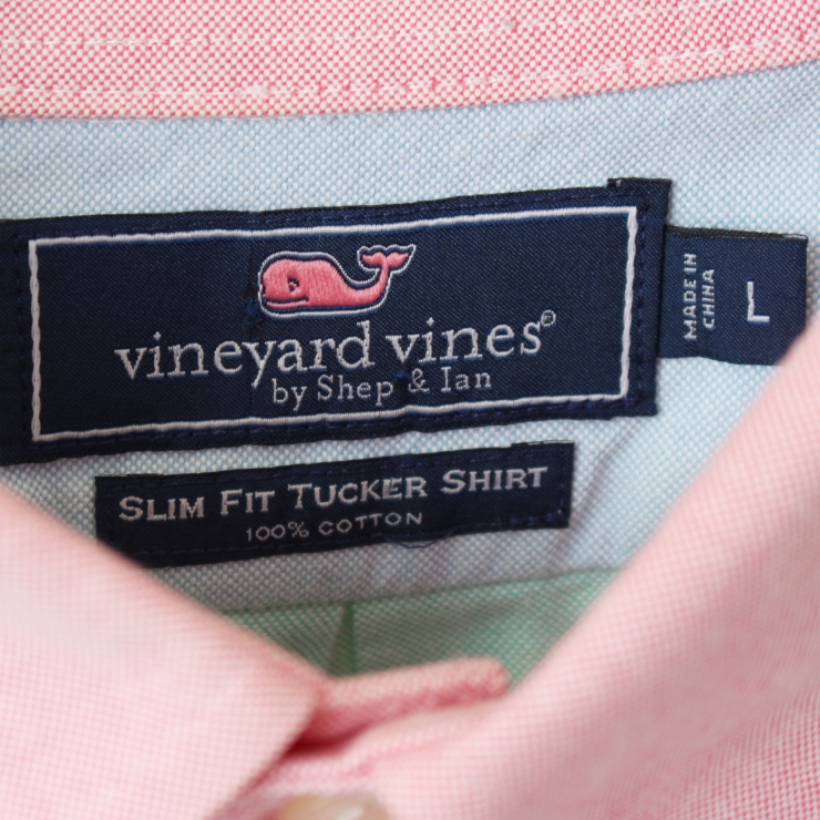 USA vineyard vines ボタンダウンシャツ グリーン レッド ブルー メンズL 長袖 アメリカ古着