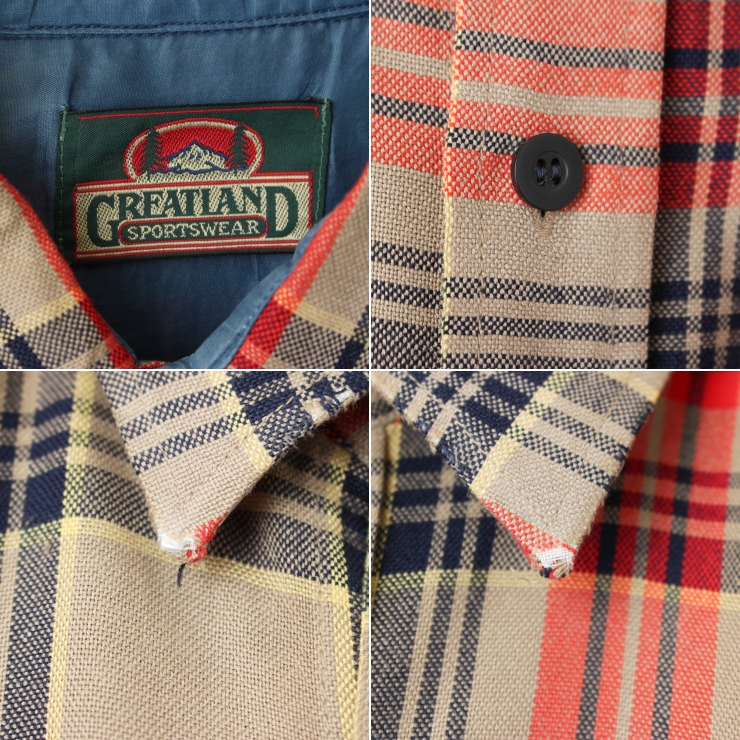 USA GREATLAND SPORTSWEAR チェックアクリルシャツ ベージュ メンズL 長袖 アメリカ古着です。