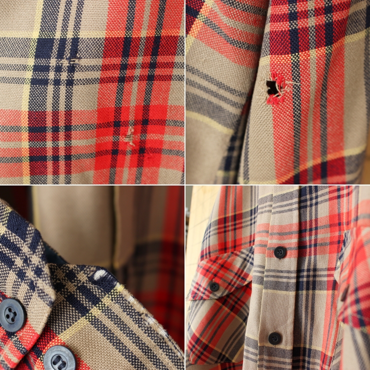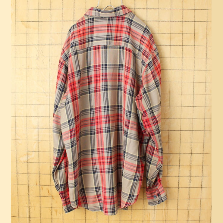 USA GREATLAND SPORTSWEAR チェックアクリルシャツ ベージュ メンズL 長袖 アメリカ古着