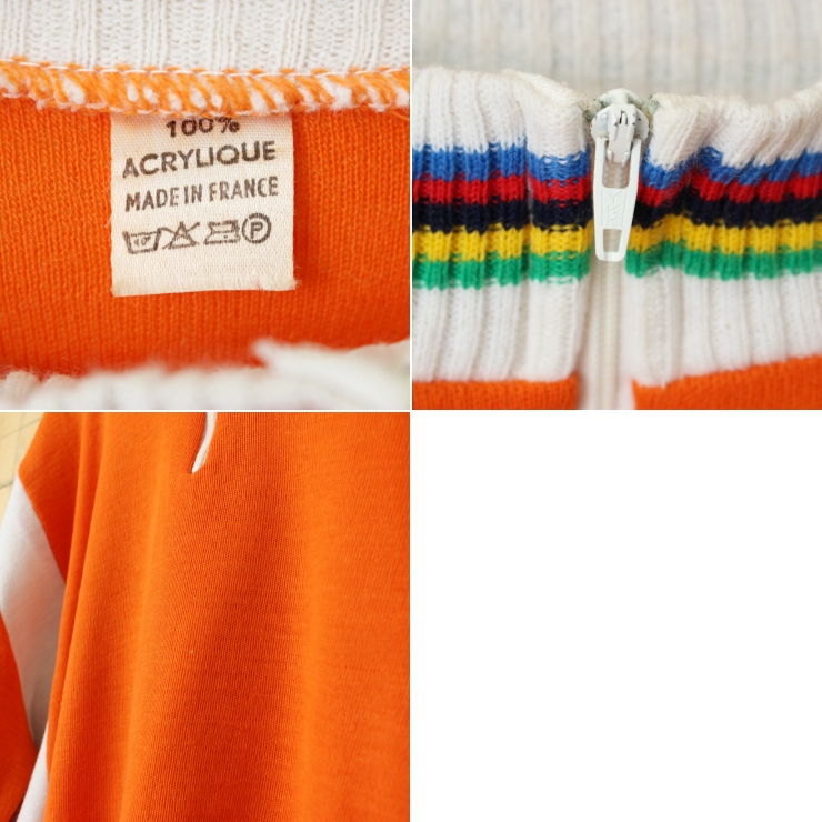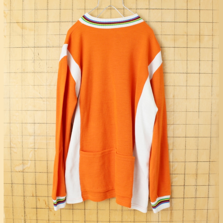 70s 80s FRANCE 長袖サイクリングジャージ シャツ プルオーバー オレンジ メンズL相当 ニット ヨーロッパ古着です。