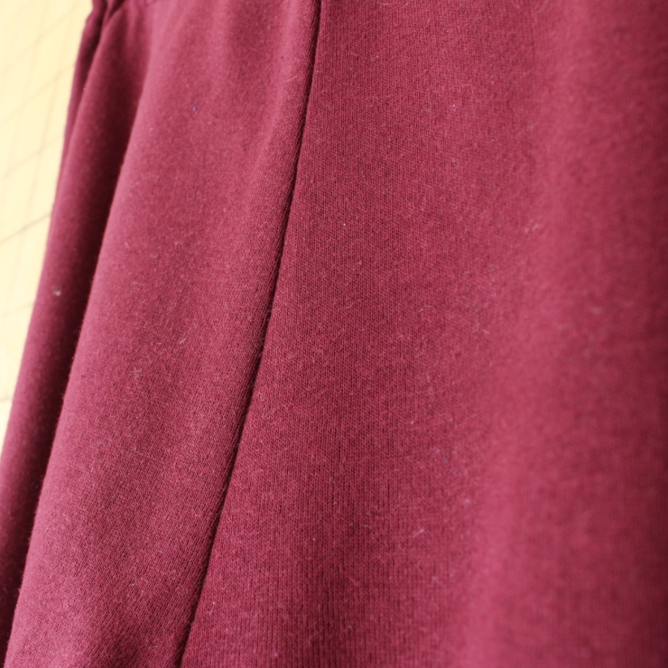 ボディカラーはボルドー、やや中肉の柔らかい生地感です。