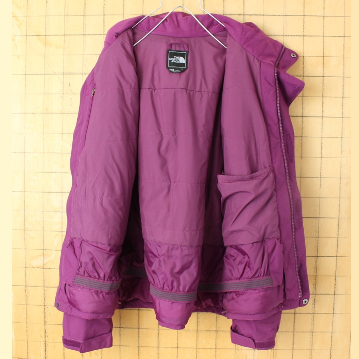 THE NORTH FACE ノースフェイス HYVENT ジップアップ スノージャケット パープル レディースL マウンテンパーカー 中綿入 アメリカ古着です。