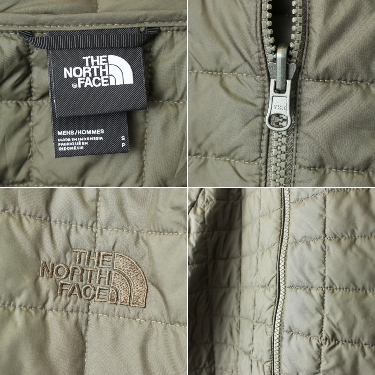 THE NORTH FACE ノースフェイス THERMOBALL 中綿キルティングジャケット カーキ グリーン メンズS ジップアップ アメリカ古着です。