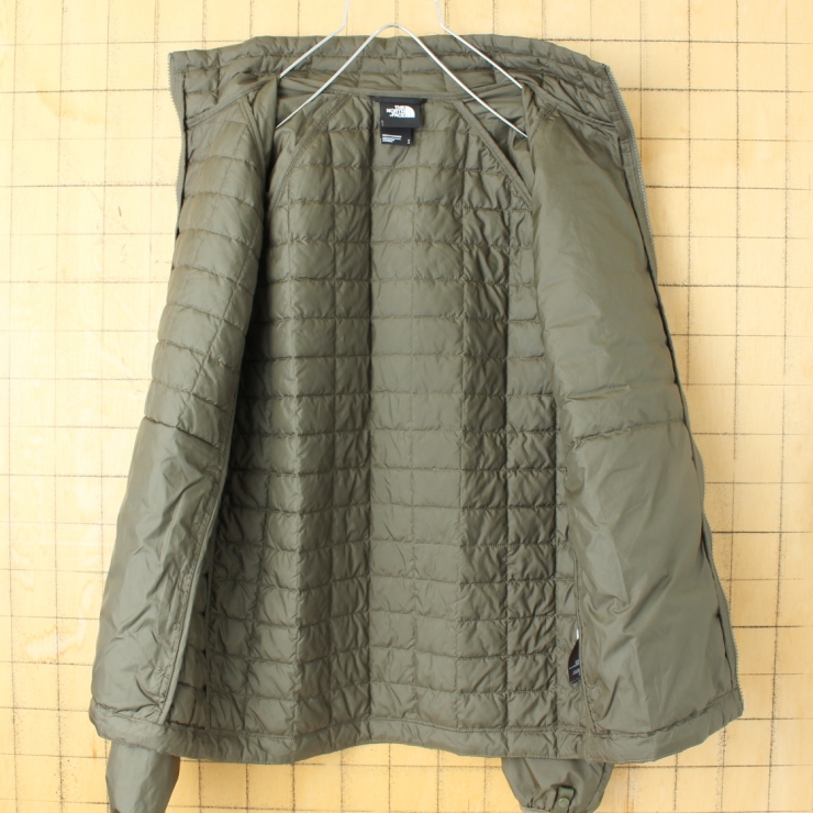 THE NORTH FACE ノースフェイス THERMOBALL 中綿キルティングジャケット カーキ グリーン メンズS ジップアップ アメリカ古着