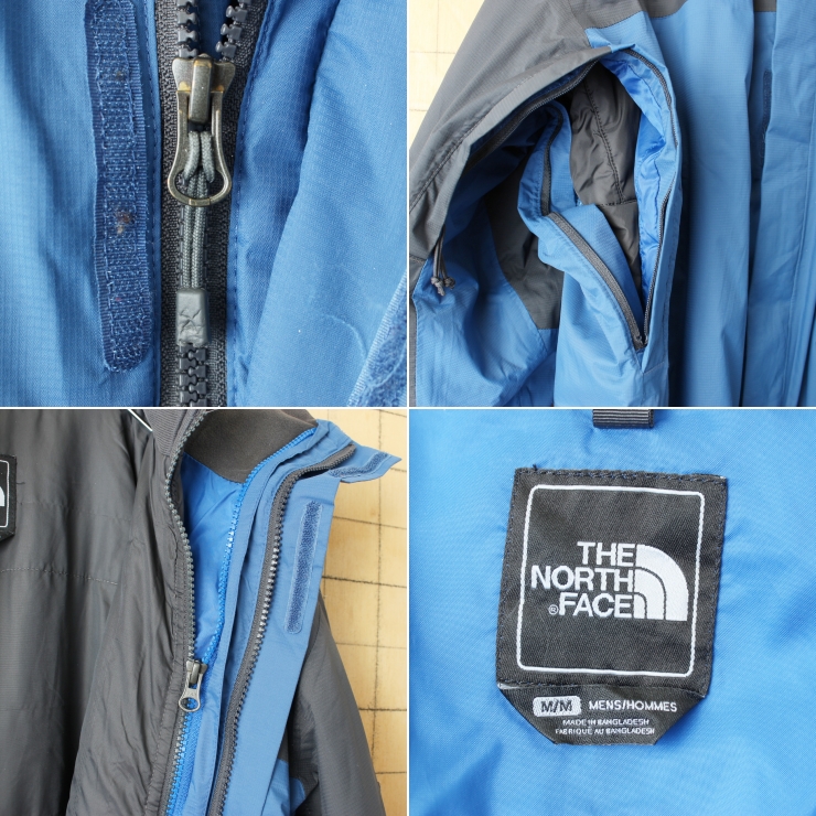 THE NORTH FACE ノースフェイス HYVENT 3WAYナイロンジャケット 中綿 キルティング ブルー メンズM アメリカ古着です。