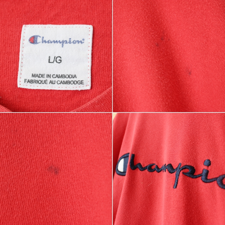 00s USA champion チャンピオン ロゴ刺繍長袖Tシャツ レッド メンズL ロンT アメリカ古着です。
