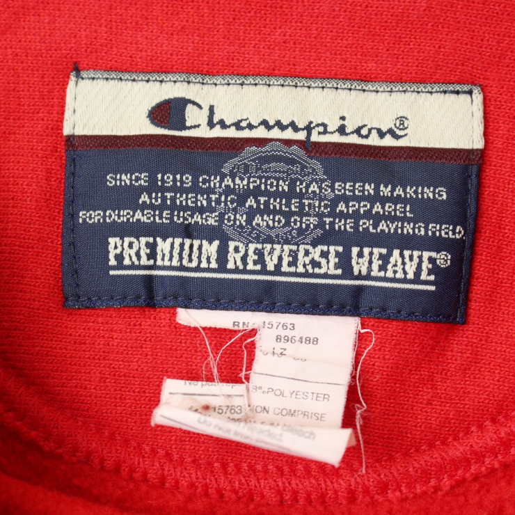 ビッグサイズ 90s 00s USA champion チャンピオン ワッペン リバースウィーブスウェット レッド メンズL アメリカ古着です。