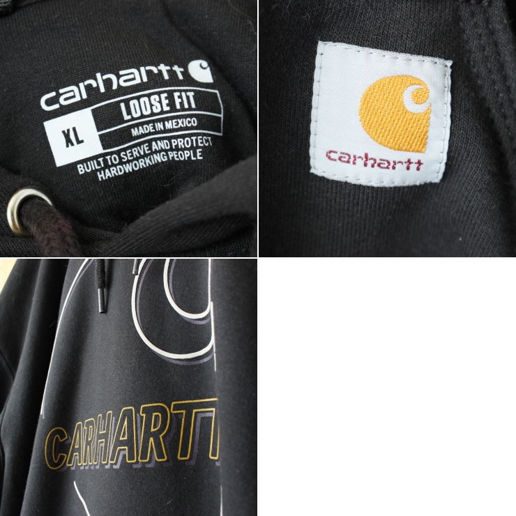 ビッグサイズ USA carhartt カーハート スウェットパーカー ブラック メンズXL フーディー プリント アメリカ古着