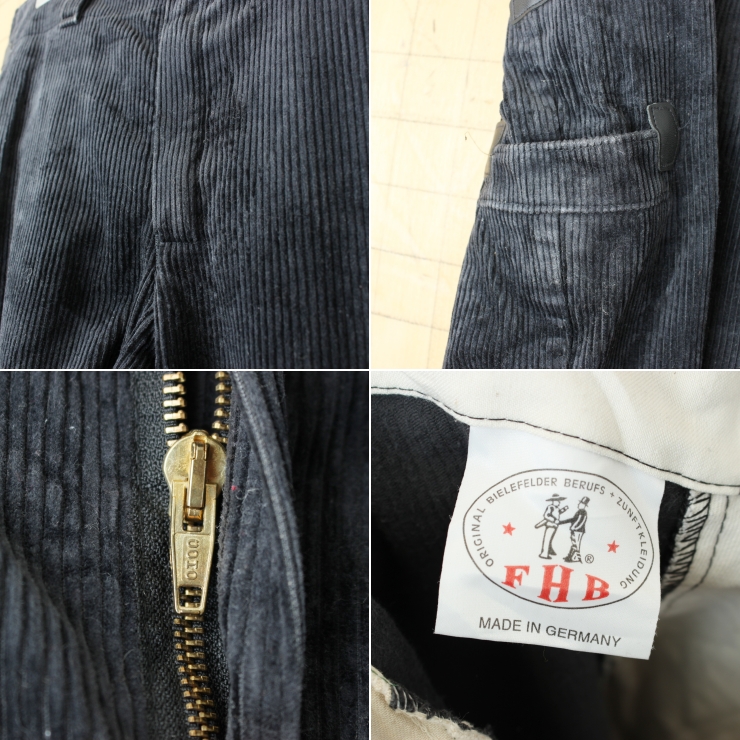 70s 80s ドイツ製 FHB 太畝コーデュロイロガーパンツ ブラック W33相当 ユーロワーク EURO ヨーロッパ古着