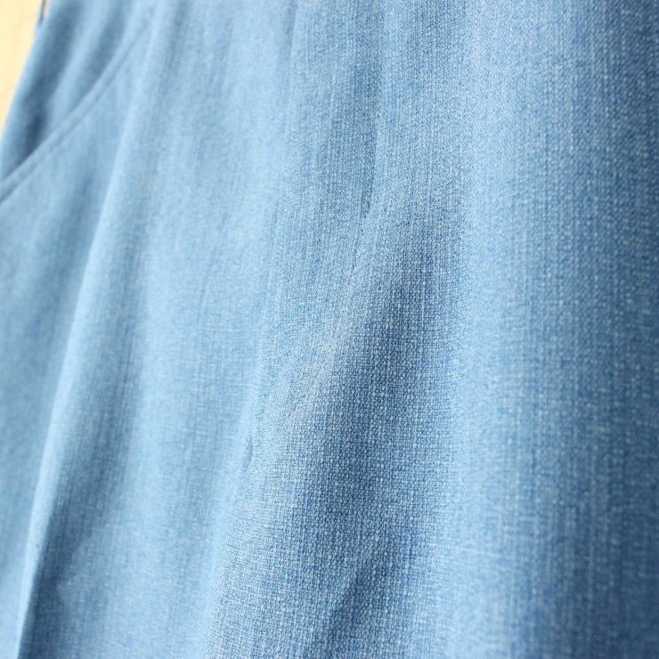 カラーはブルー、程よい厚みのある柔らかい生地感です。