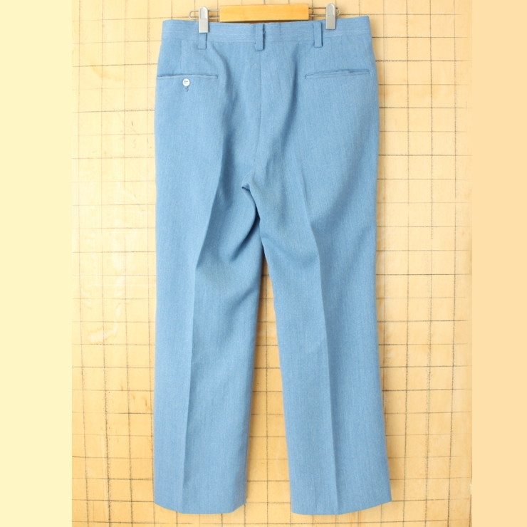 70s 80s USA製 スラックス ドレスパンツ ブルー W35相当 TALON アメリカ古着