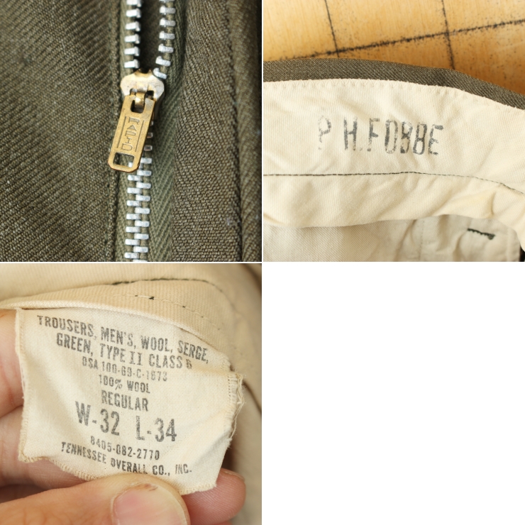 60s U.S.ARMY ウールパンツ TROUSERS MENS WOOL SERGE GREEN TYPE2 CLASS6 ミリタリー W32 スラックス 実品 アメリカ古着