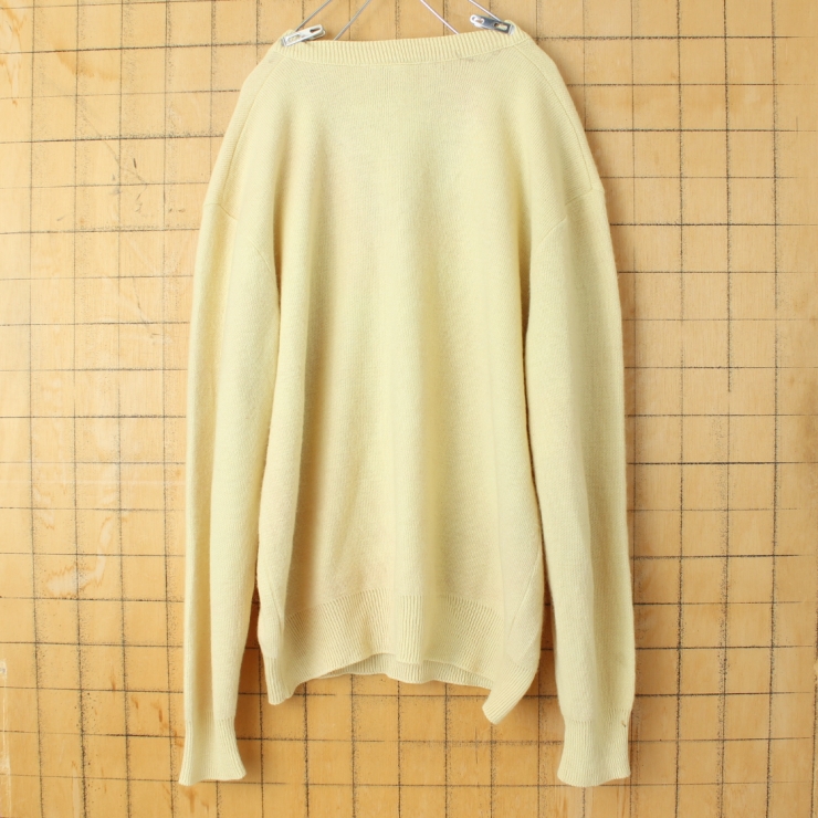 70s 80s フランス製フレンチラコステ LACOSTE ウールニットVネックセーター イエロー メンズL相当 ヨーロッパ古着