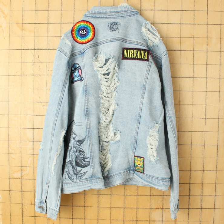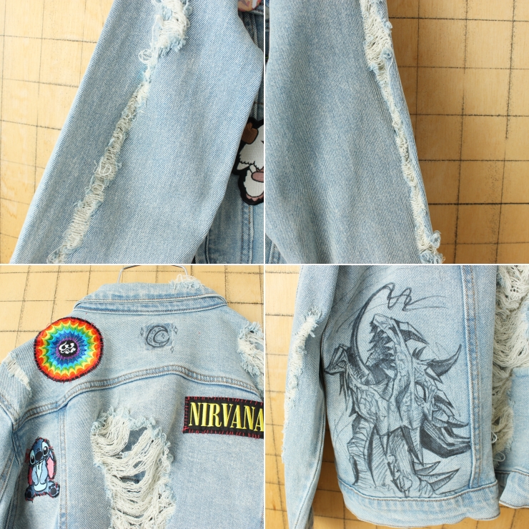USA Wild Fable ダメージデニムジャケット レディースL ブルー ワッペン バッジ アメリカ古着です。