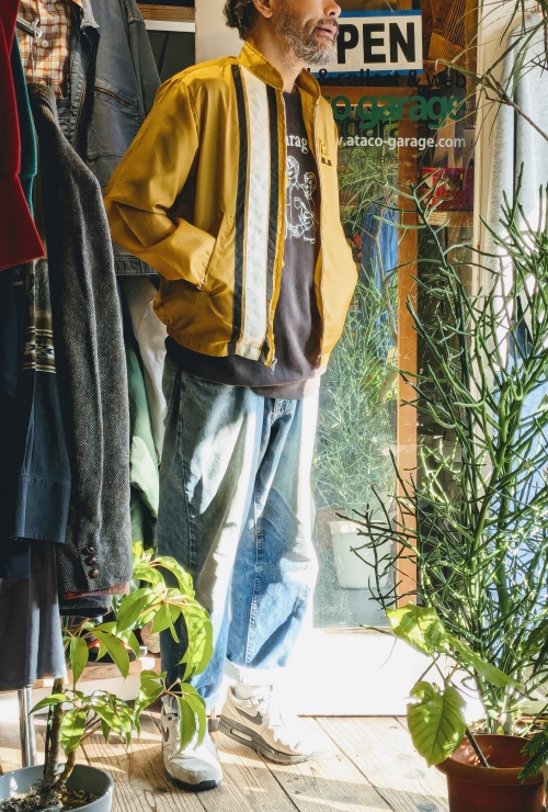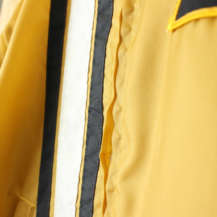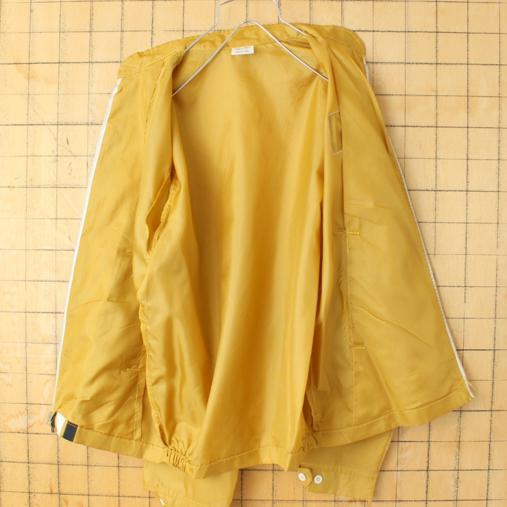 70s 80s USA製 Cap'n Jac ワッペン ナイロンレーシングジャケット メンズM イエロー ゴールド アメリカ古着です。
