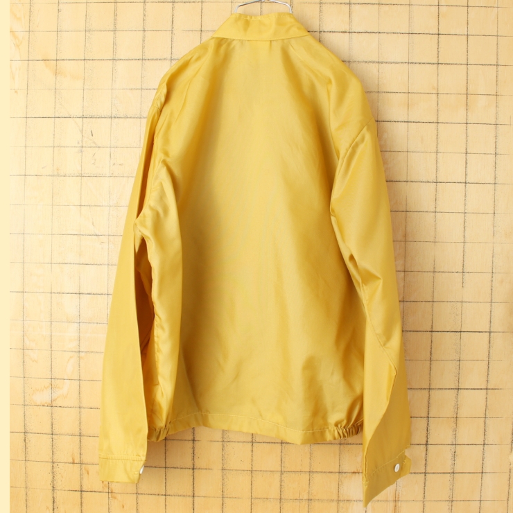 70s 80s USA製 Cap'n Jac ワッペン ナイロンレーシングジャケット メンズM イエロー ゴールド アメリカ古着