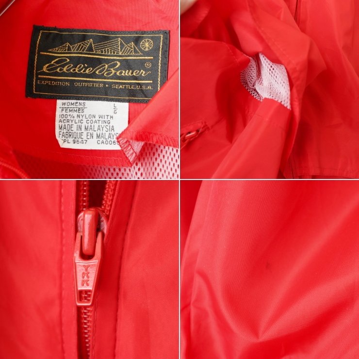 80s USA Eddie Bauer エディーバウアー ナイロンジャケット レディースL メンズM相当 レッド アウトドア アメリカ古着