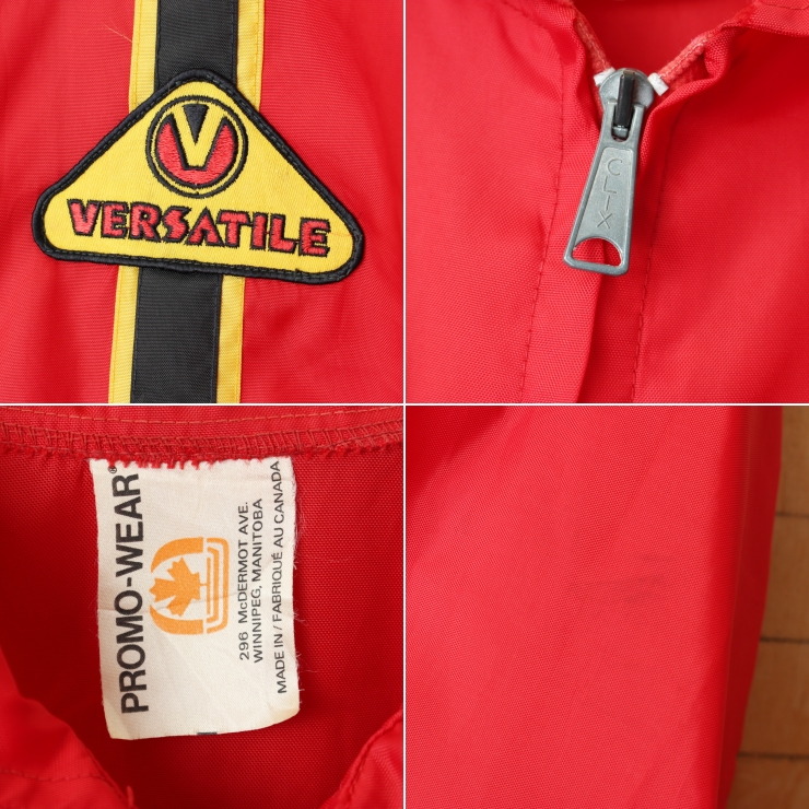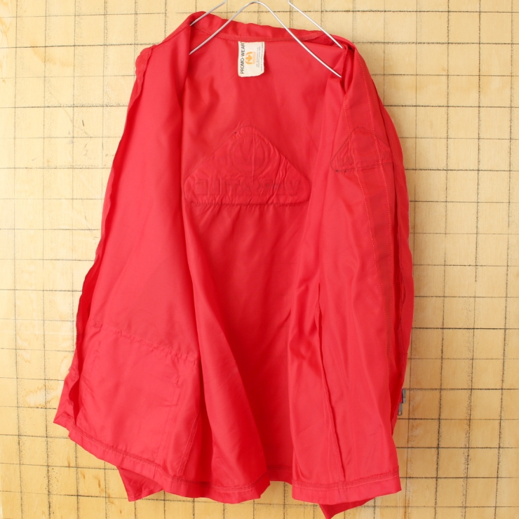 70s 80s CANADA製 PROMO-WEAR ワッペン ナイロンレーシングジャケット メンズL相当 レッド アメリカ古着です。