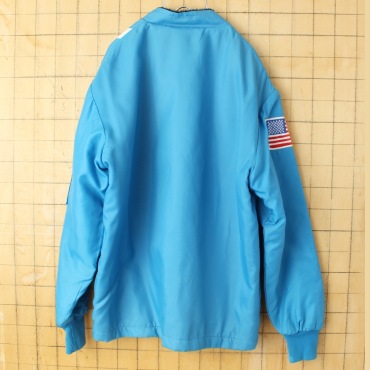 70s 80s USA製 THE GREAT LAKES JACKET ワッペン ナイロンレーシングジャケット ライトブルー メンズS ボアライナー アメリカ古着