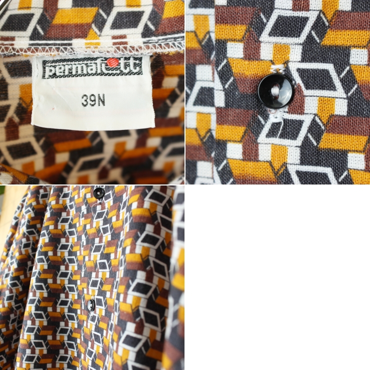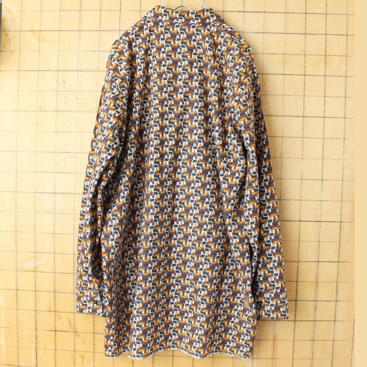70s 80s EURO permaflott コットン総柄シャツ ブラウン メンズML相当 長袖 ヨーロッパ古着です。