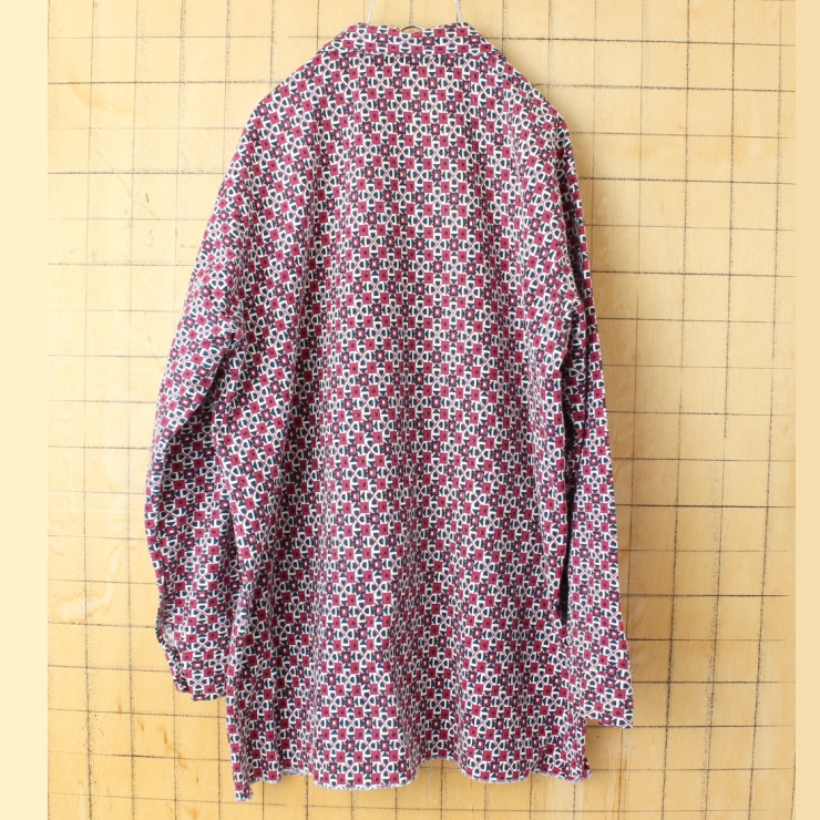 70s 80s EURO コットン総柄シャツ レッド メンズL相当 長袖 ヨーロッパ古着です。