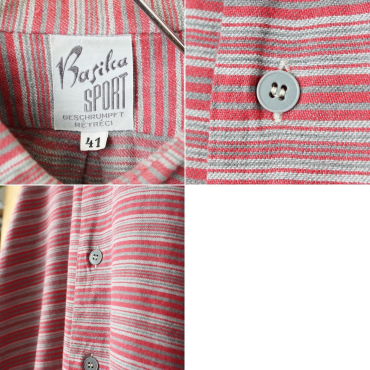 60s 70s EURO Basilea SPORT ボーダーグランパシャツ レッド メンズL相当 長袖 グランドファーザー ヨーロッパ古着です。