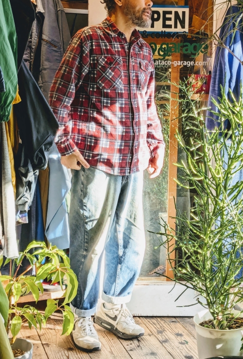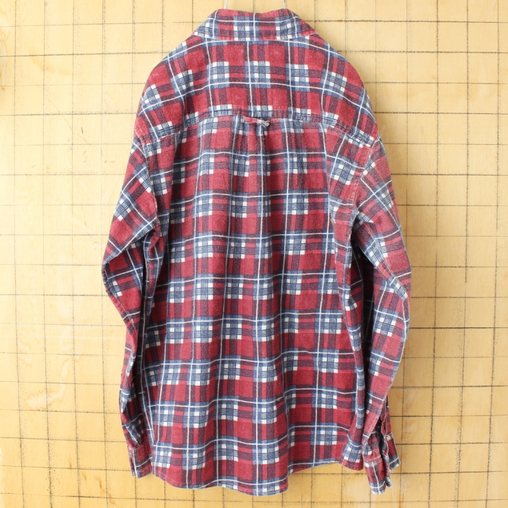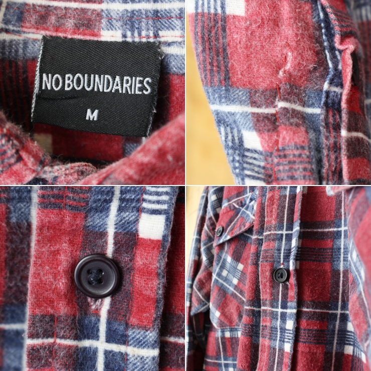 80s 90s USA NO BOUNDARIES プリントネルチェックシャツ レッド メンズM 長袖 アメリカ古着です。